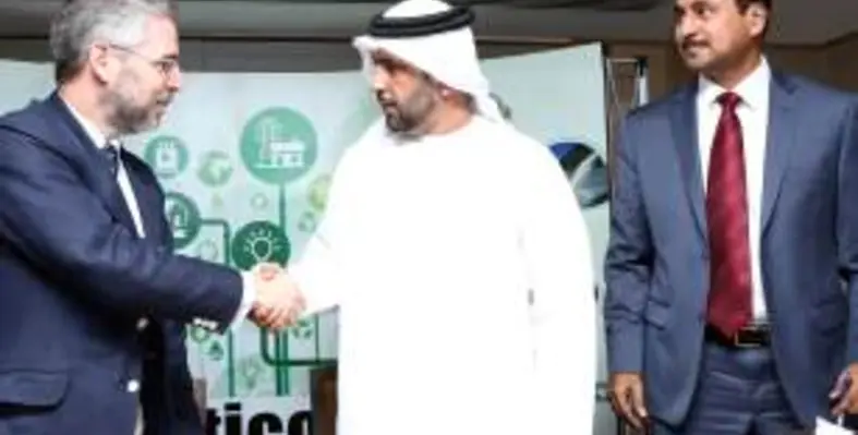 (From left to right) Luis Rein, managing director Infrastructure Concessions, Grupo Cobra; Rashid Al Baloushi, chairman of Utico Middle East; and Richard Menezes, Utico?s managing director, sign the shareholders? agreement in Dubai. (Image source: Utico Middle East)